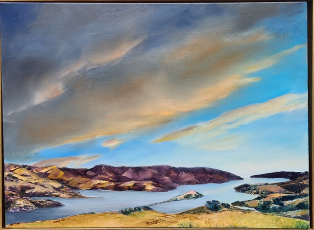 Kilmeny Keyse is continuing her exploration of abstracted land forms against a background of sumptuous Baroque clouds inspired by the vibrant setting sun over the wide New Zealand landscape.